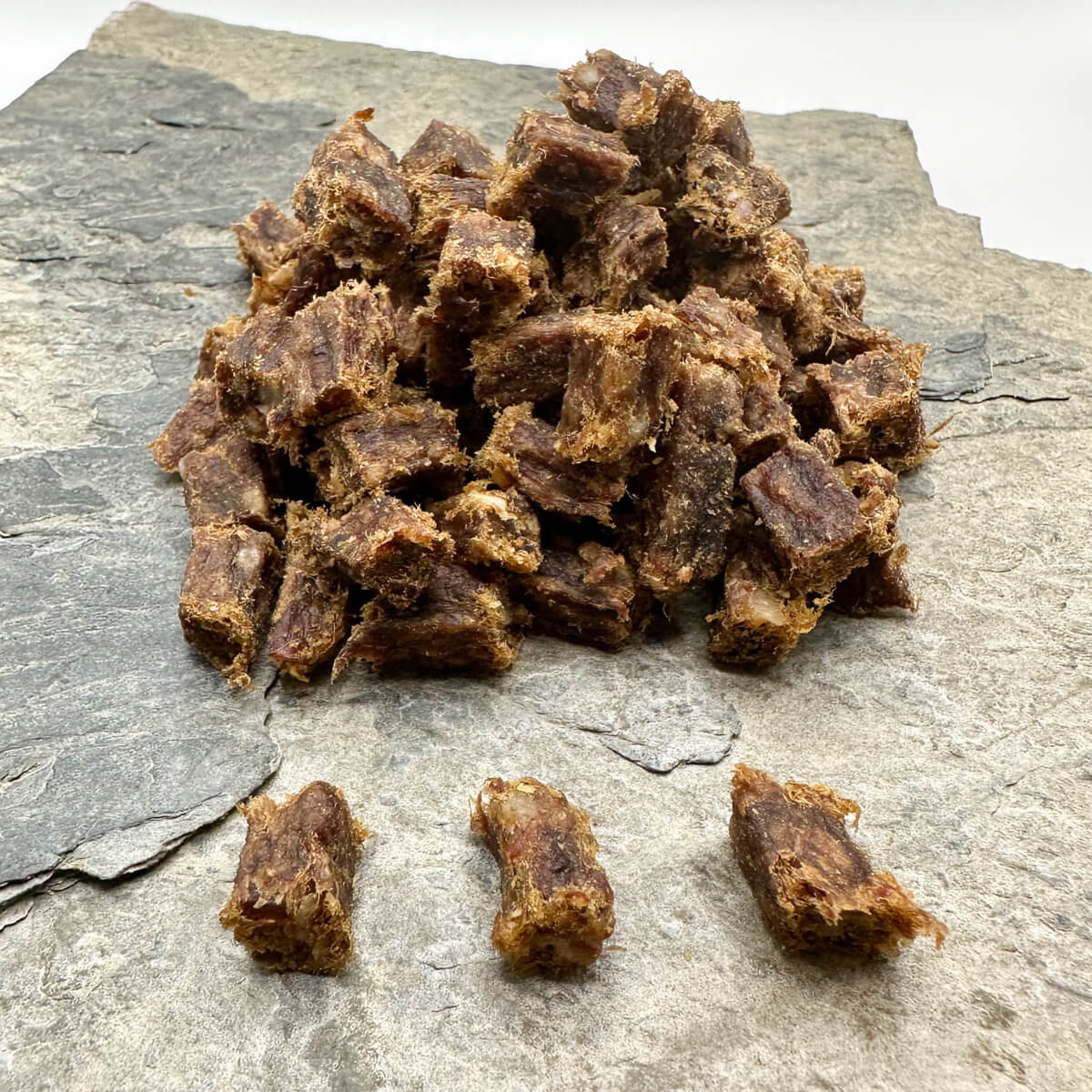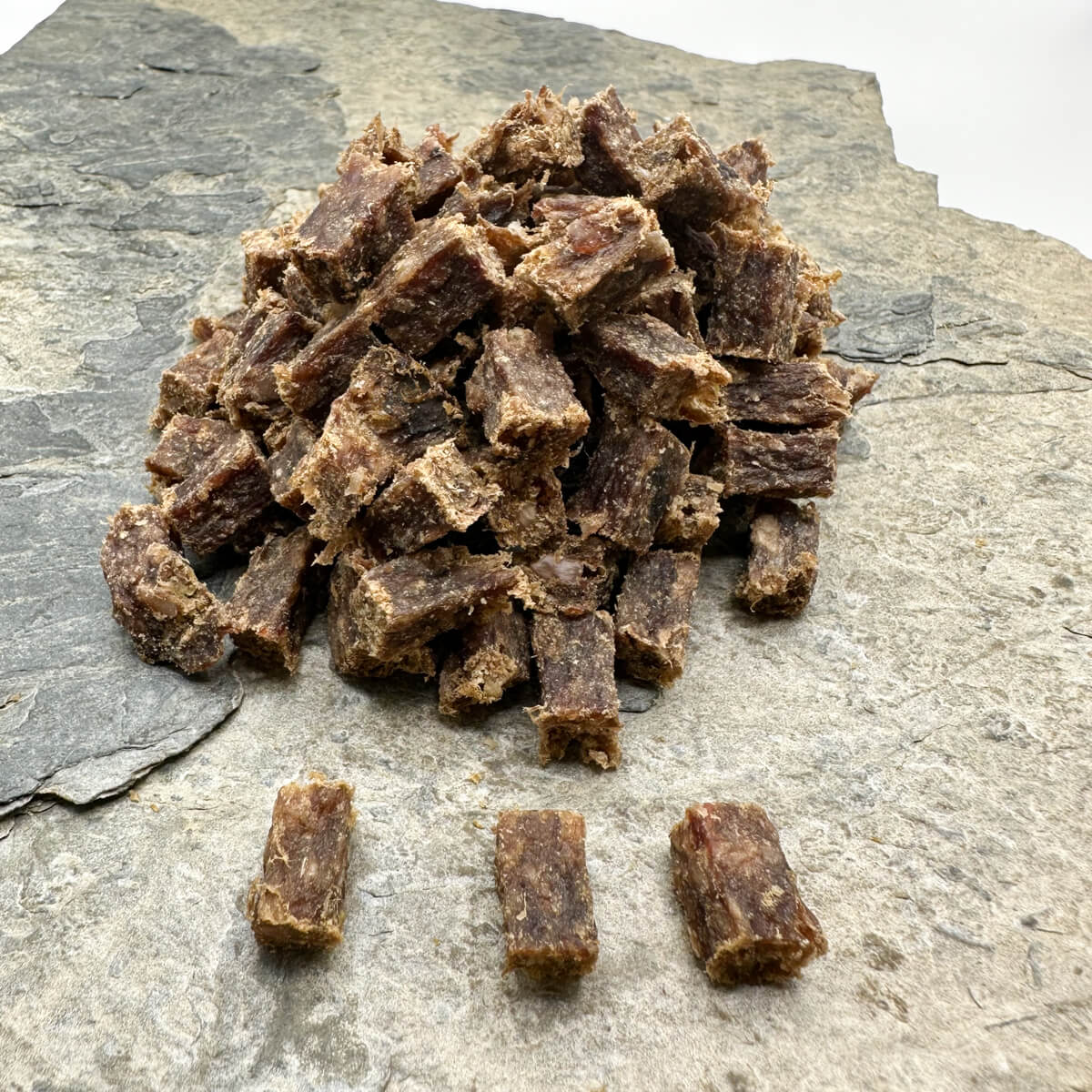 Disse bløde og møre hestekødterninger er den perfekte snack til både træning og forkælelse. De er særligt velegnede til hunde med allergi og følsomme maver.