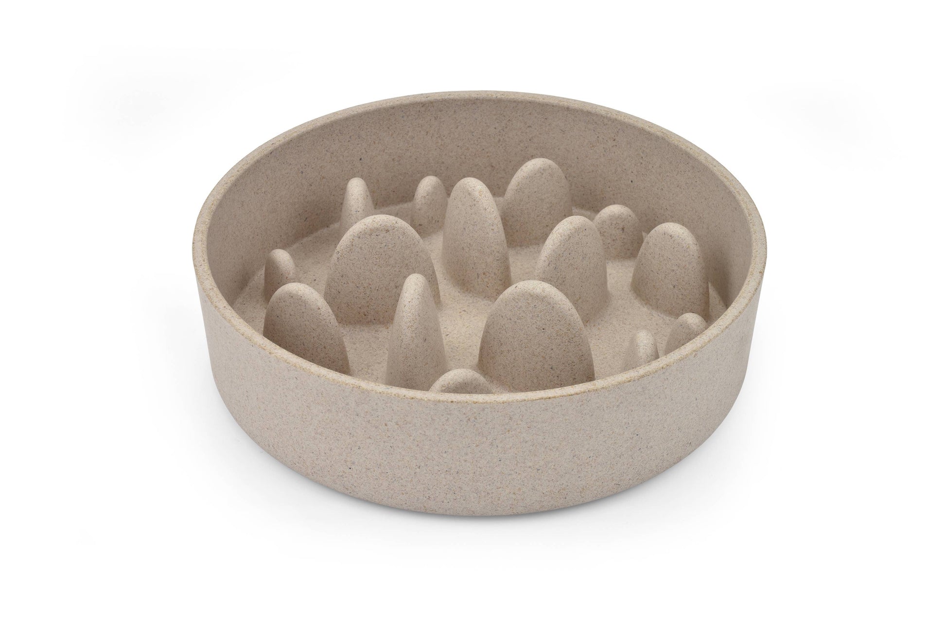 Designet til at forlænge måltidet, så hunde spiser roligere, hvilket kan dæmpe angst og støtte en sund fordøjelse. Skålen består af 50% bambus og er udstyret med skridsikker base. Ved at sænke indtagelseshastigheden mindskes risikoen for mavevridning, især hos store racer.