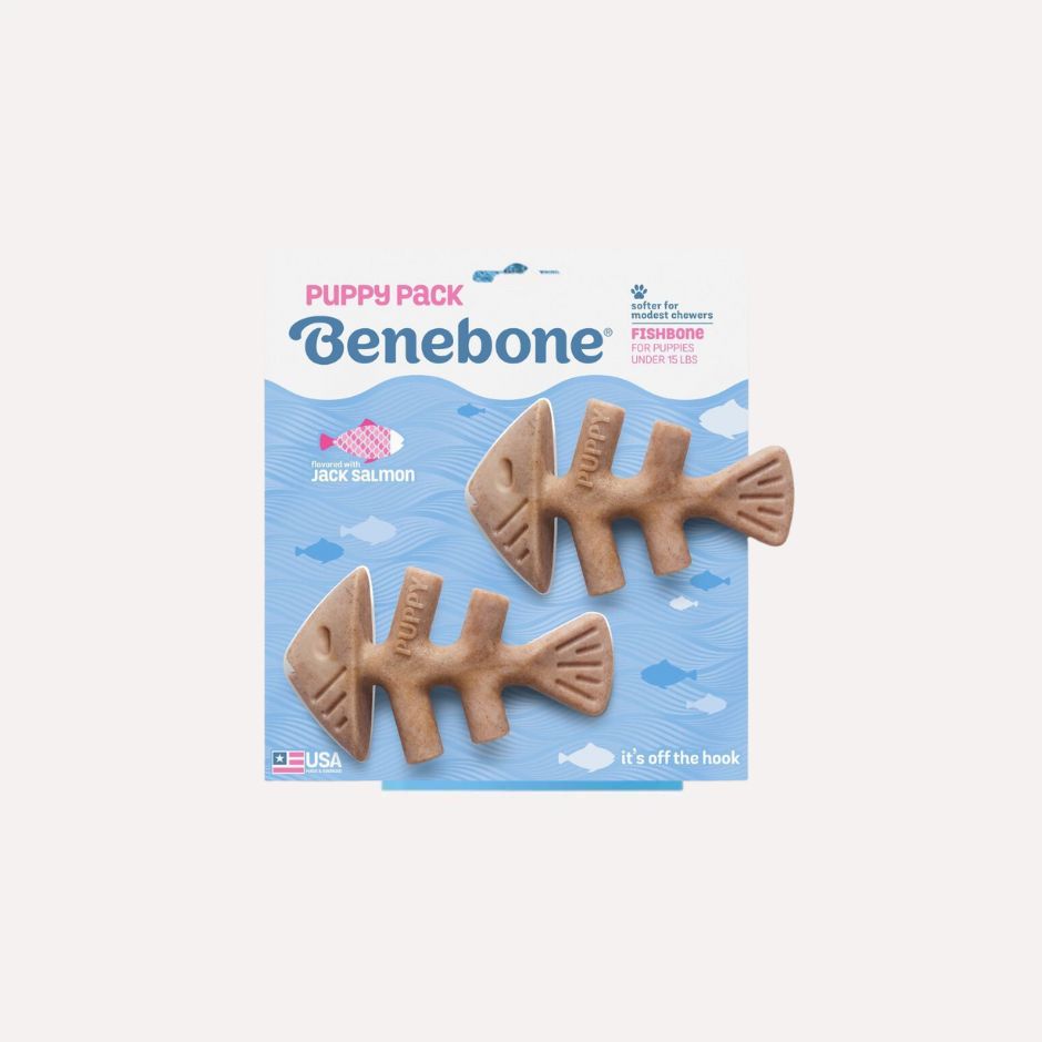 Benebone Fishbone tyggelegetøj til hunde med smag af laks. Et meget holdbart tyggelegetøj fremstillet af superstærk nylon.