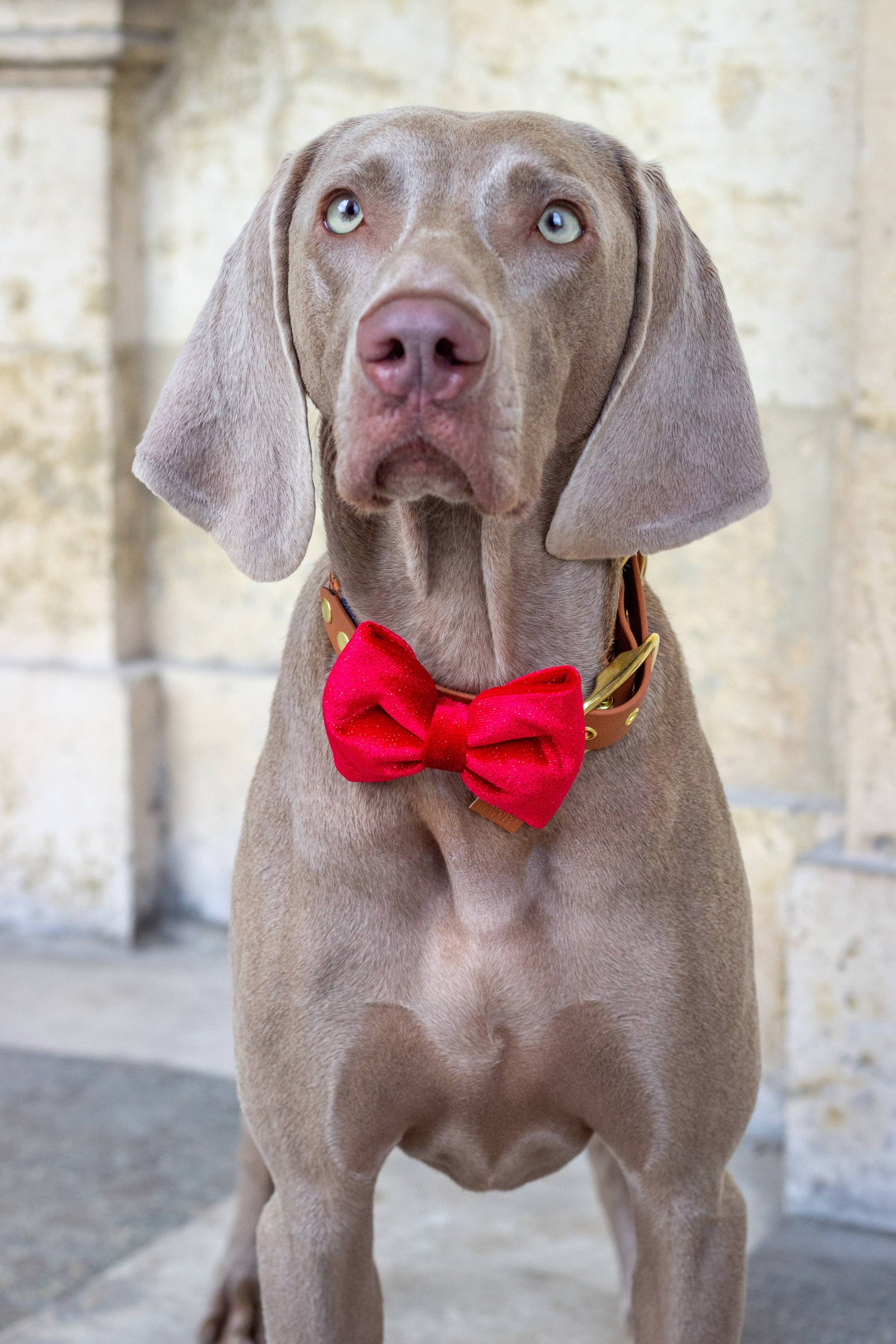 Sløjfterne sættes på din hunds halsbånd ved hjælp af to gummibånd syet bagpå.