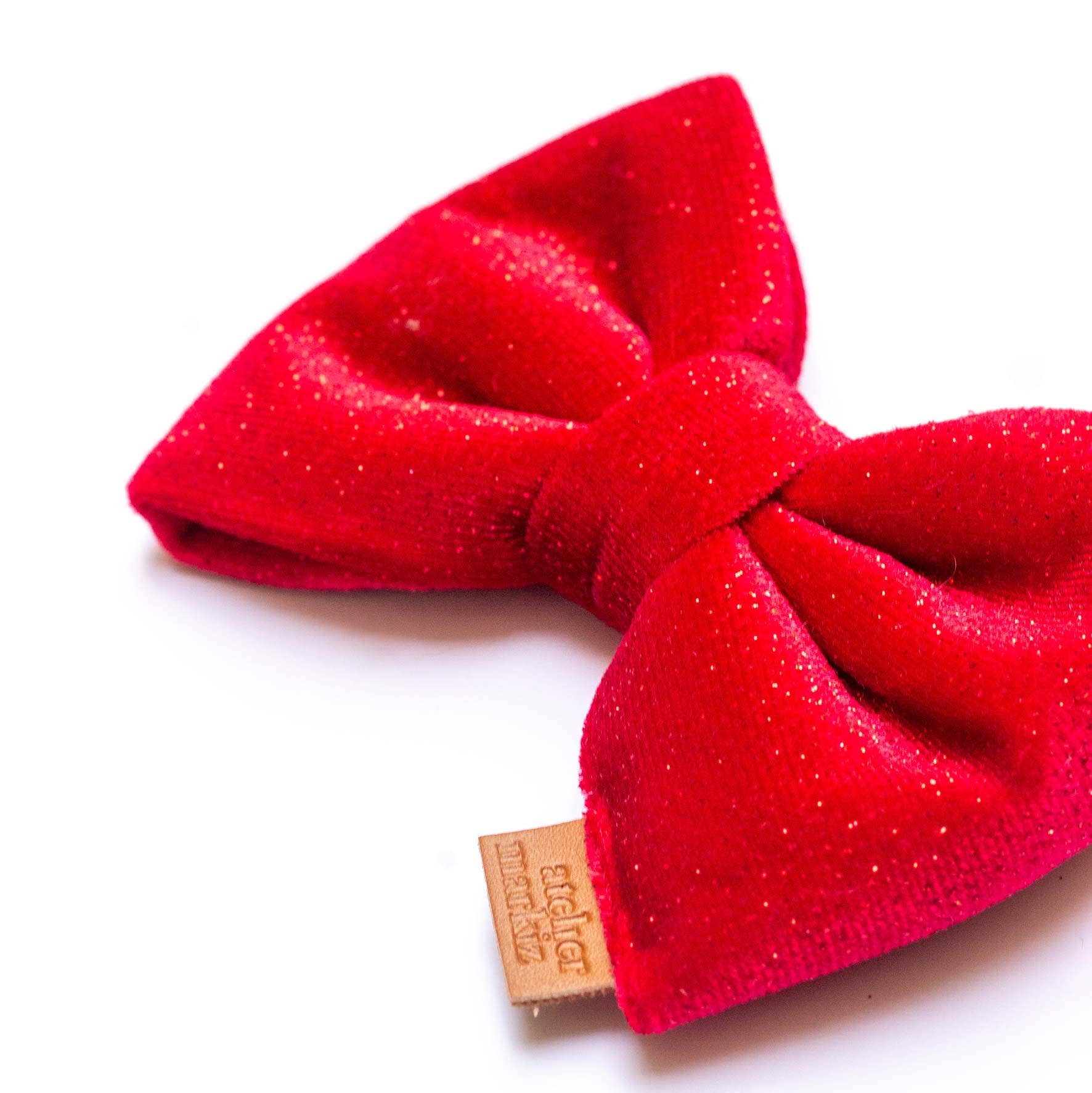 Klar til juletid med den fineste julerøde fløjlsløjfe med rød glitter!