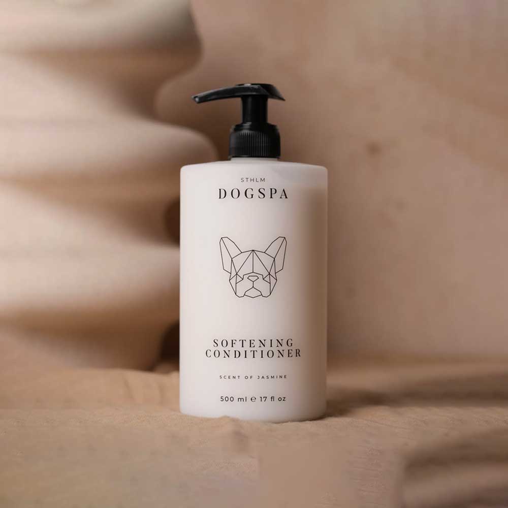 STHLM DOGSPA Softening Conditioner er en hundebalsam skabt til din fluffy vens behov. Perfekt til brug efter shampoo for en komplet, luksuriøs og afslappende oplevelse, der efterlader en silkeagtig og smuk pels.