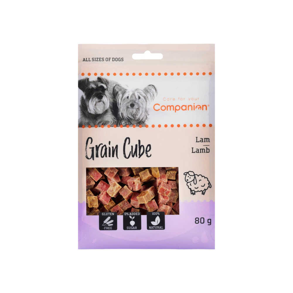 Små, velsmagende terninger med lam – perfekte som belønning under træning eller en ekstra godbid i hverdagen. Companion Grain Cube er fremstillet af naturlige ingredienser, helt uden gluten og tilsat sukker, og kommer i en praktisk genlukpose, der holder snacken frisk og klar til brug.