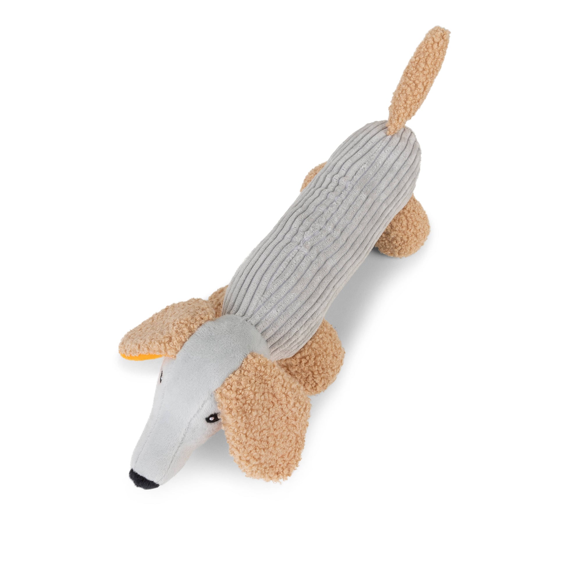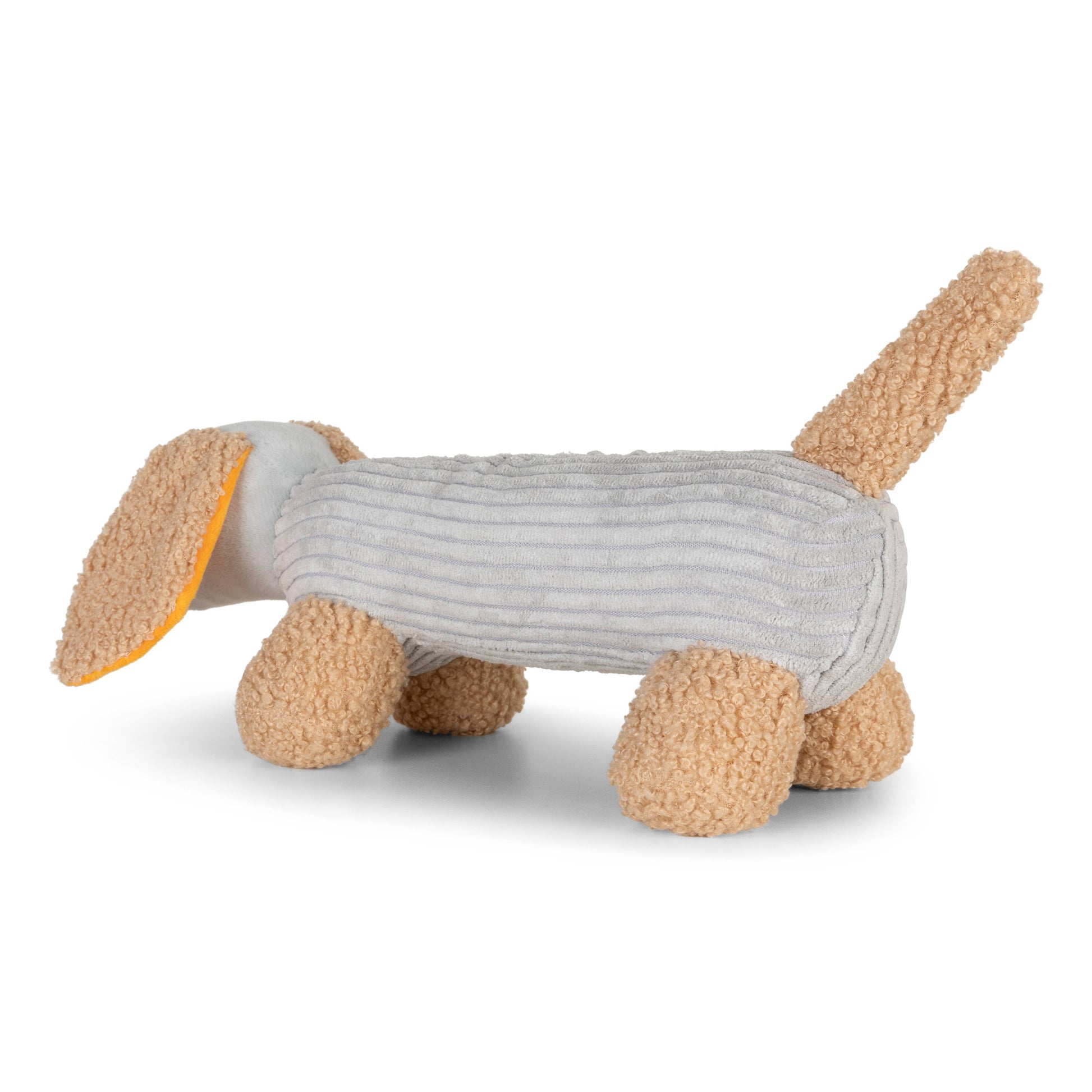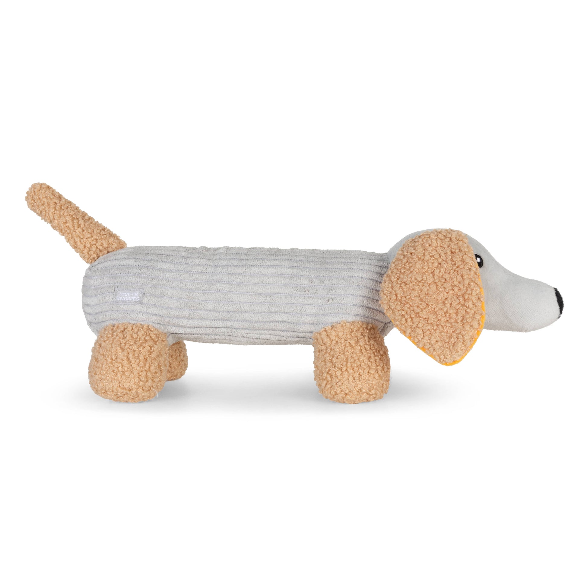 Micky gravhunden er din hvalps nye bedste ven. Micky er blød, har en pivelyd gemt i maven, og hans ører har knitrende lyde og er smukt orange indeni.