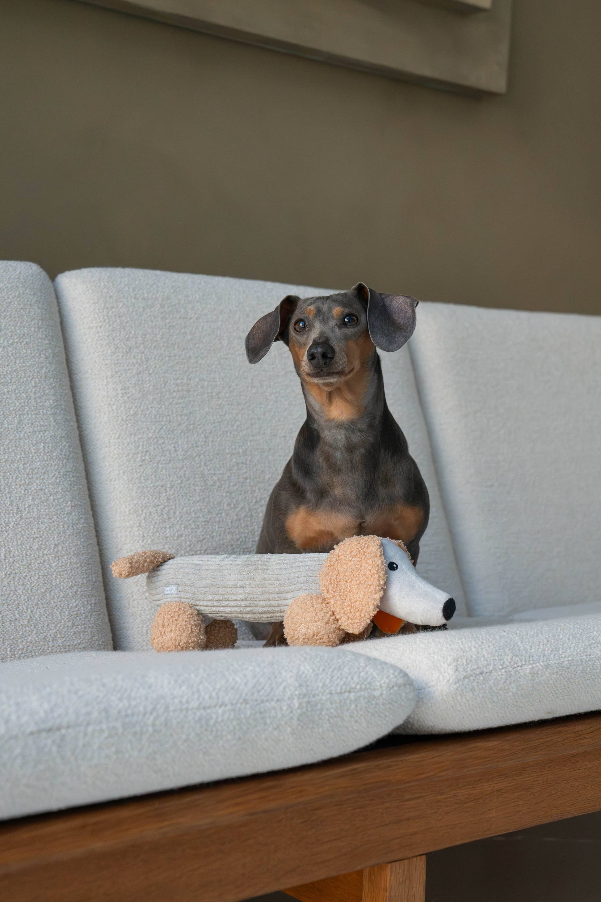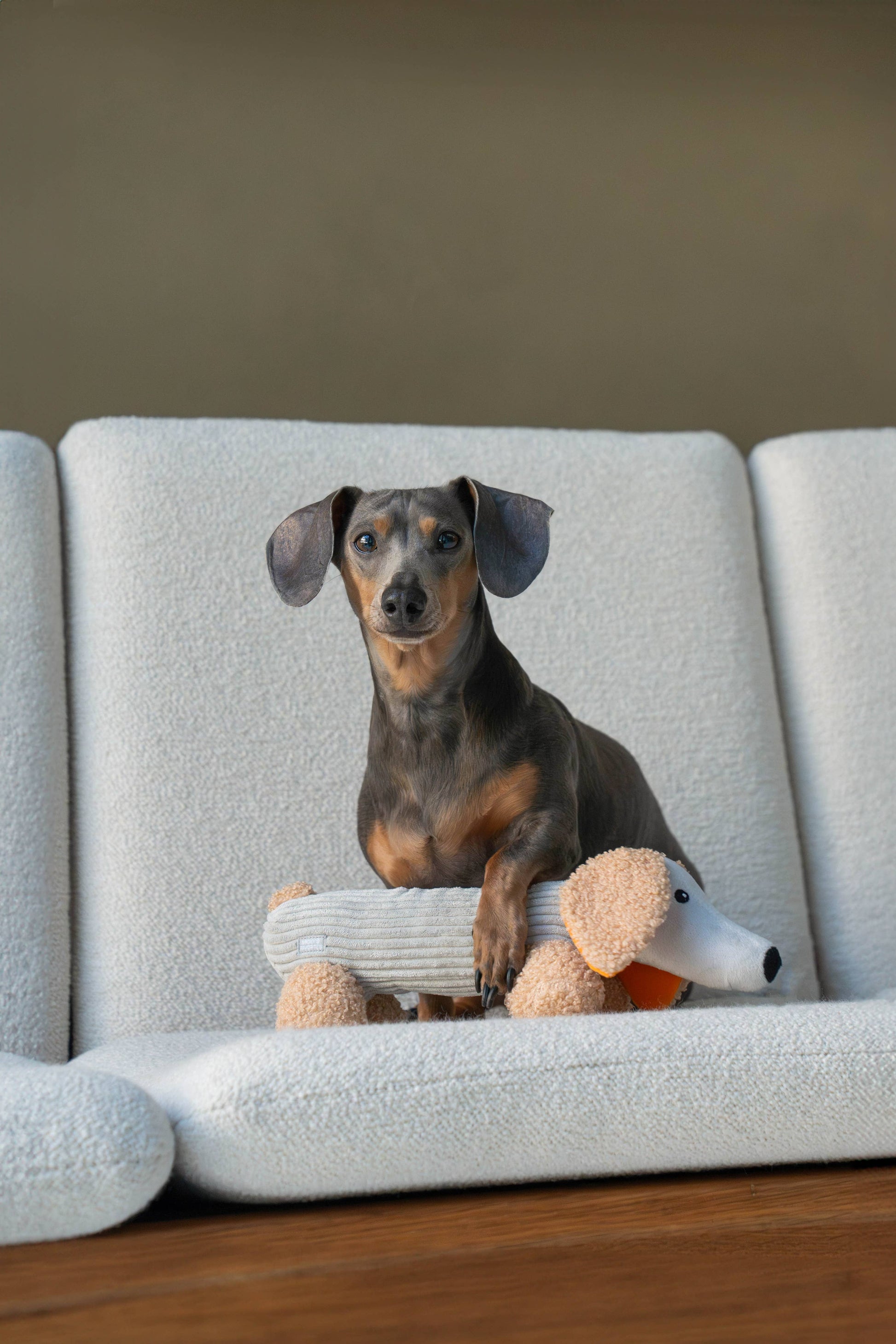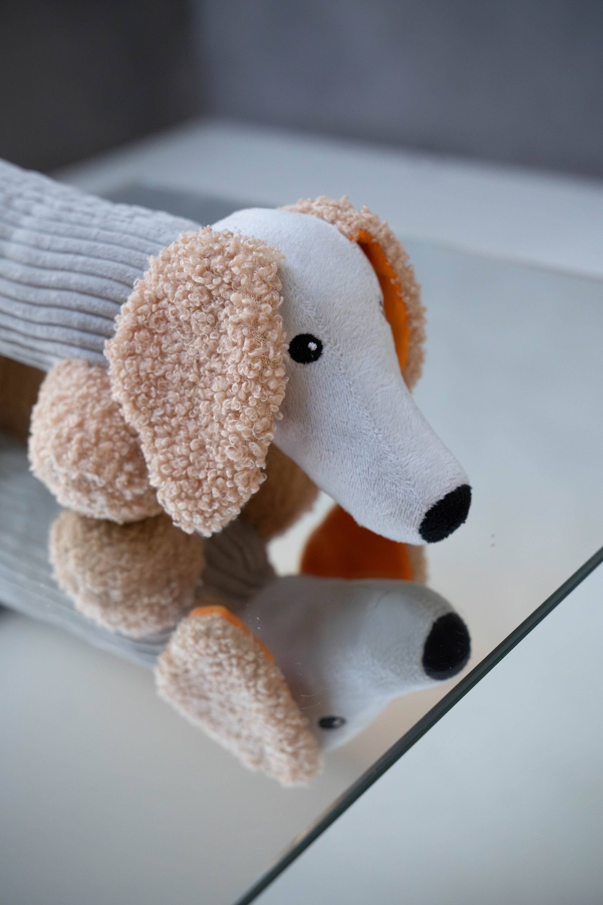 Micky gravhunden er din hvalps nye bedste ven. Micky er blød, har en pivelyd gemt i maven, og hans ører har knitrende lyde og er smukt orange indeni.