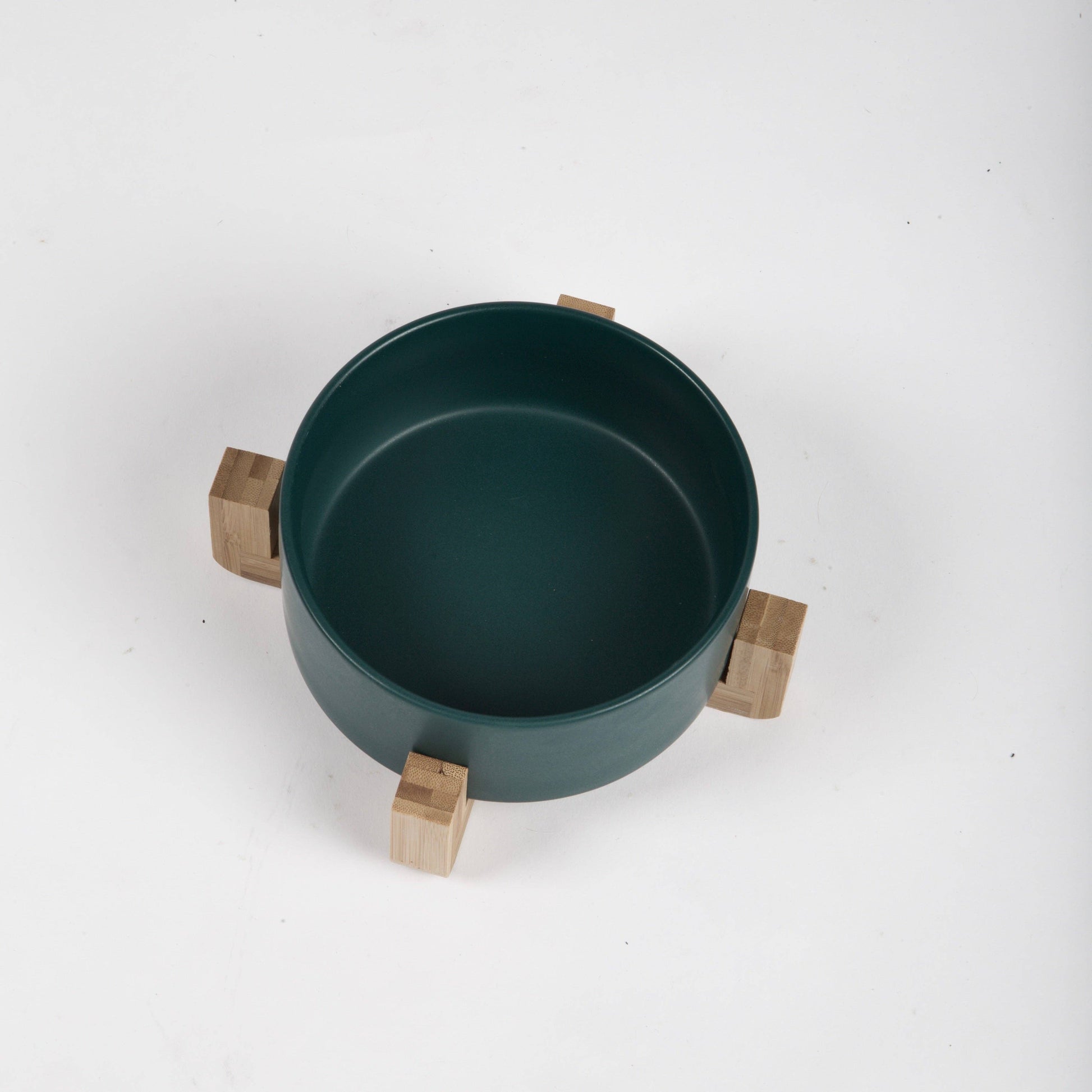 Skålen er af keramik og har en mat overflade, som matcher træet perfekt.