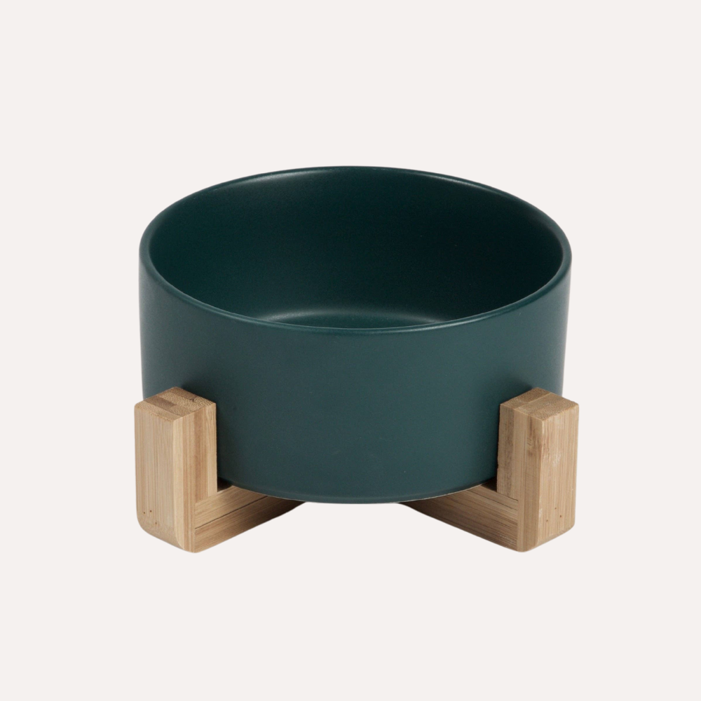 Smuk, minimalistisk mad- og vandskål på træfod.