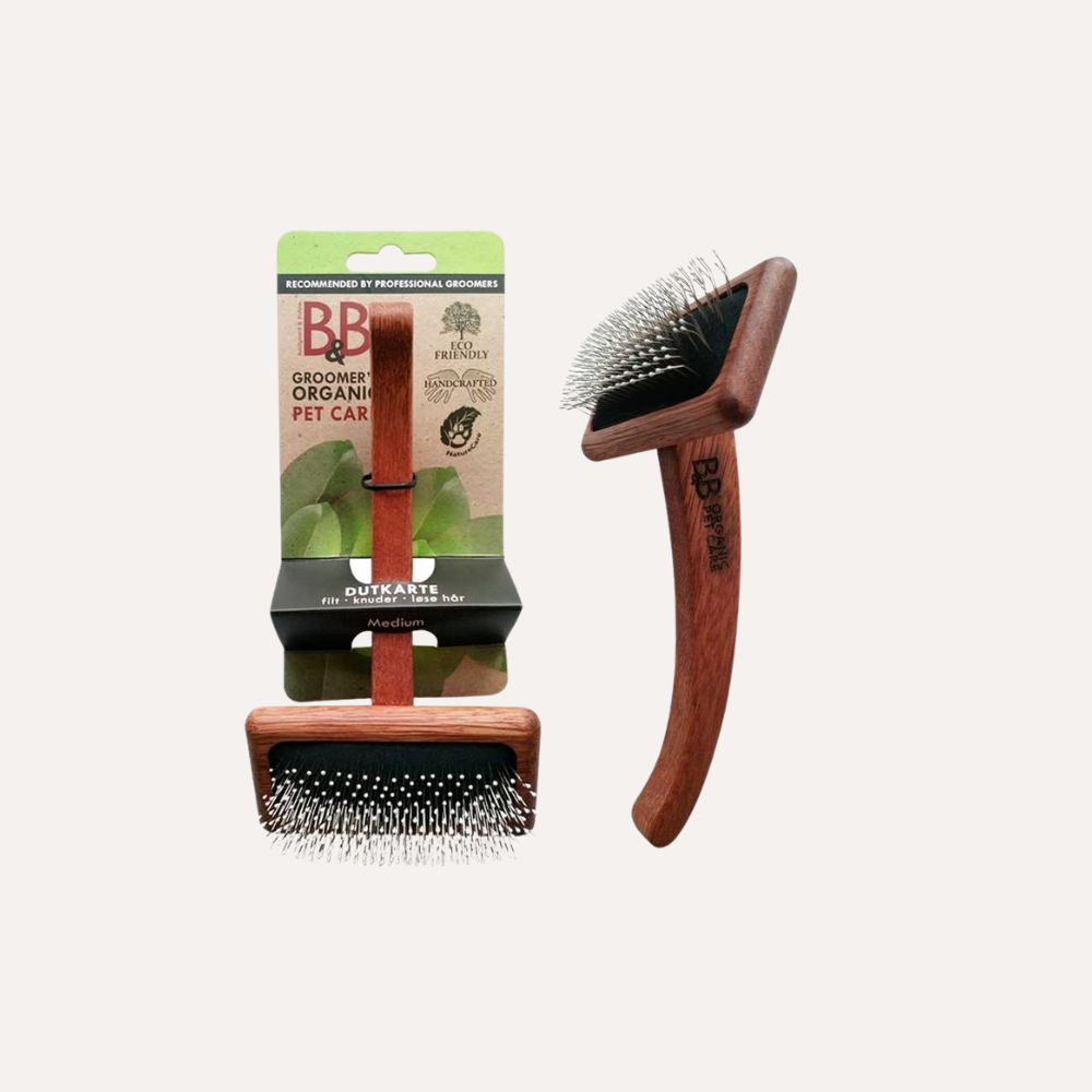 Kan med fordel kombineres med B&B's guldkam til slut, for at sikre at pelsen er komplet filtfri.