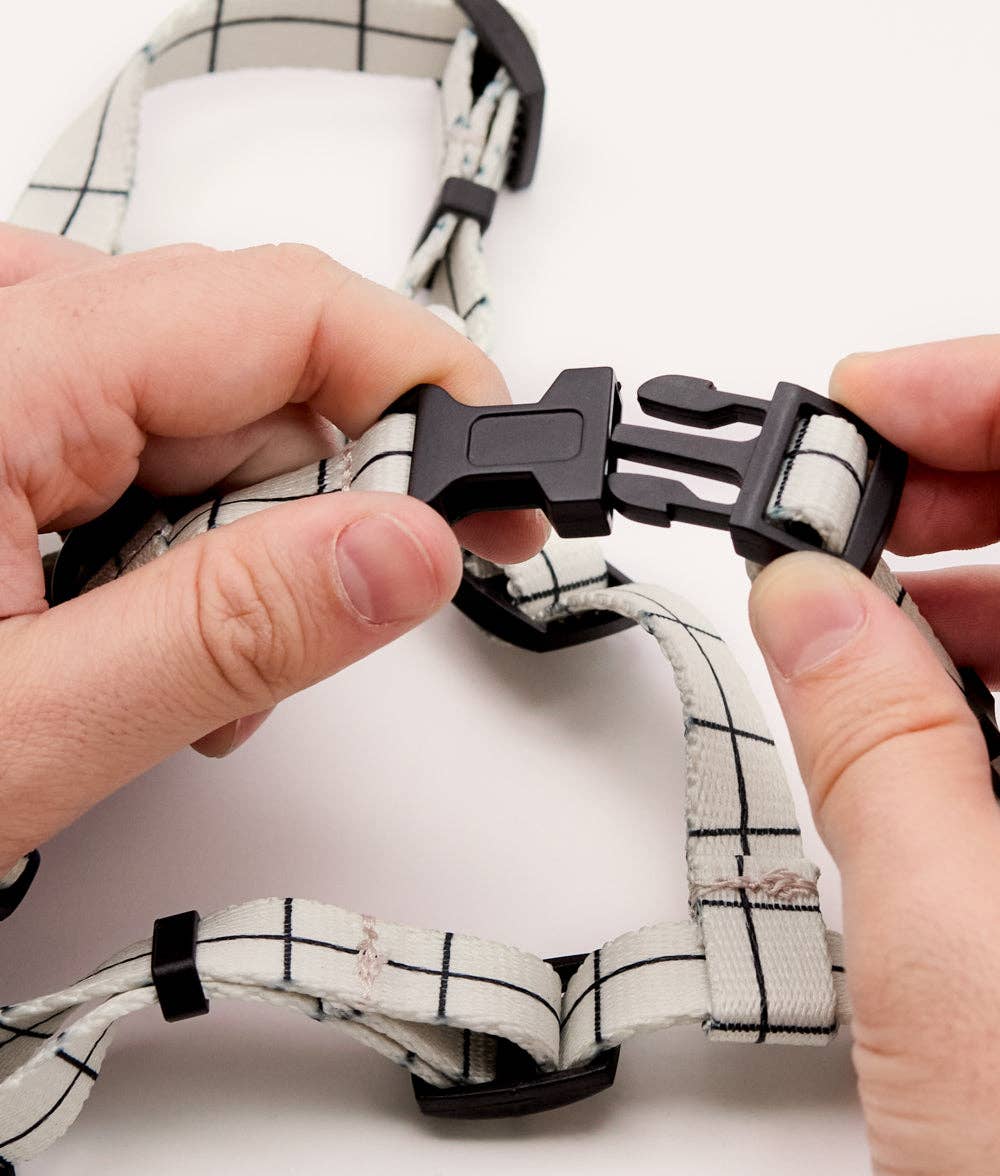 Let sele til hund, lavet af stof fra genbrugte flasker i Europa. Letvægtsprodukt, der kan justeres takket være dets beslag i holdbar plastik.