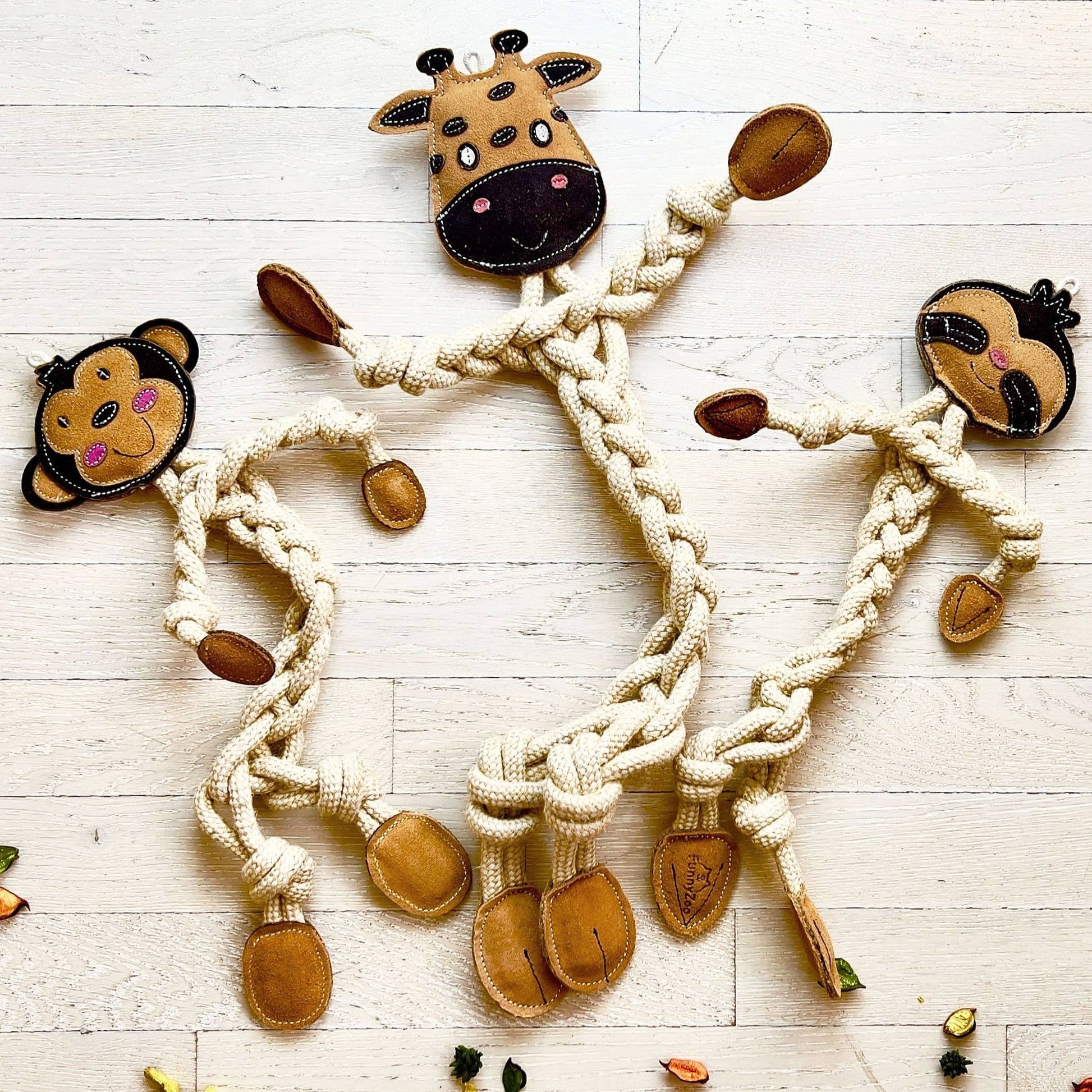 Gør legen endnu sjovere med dette robuste reb-legetøj i form af en stor giraf! Perfekt til tyggeglade hunde, trækkelege og apportering. De naturlige bomulds- og jutereb fungerer samtidig som tandtråd og hjælper med at rense tænderne, mens det bløde ruskind er skånsomt mod tandkødet.