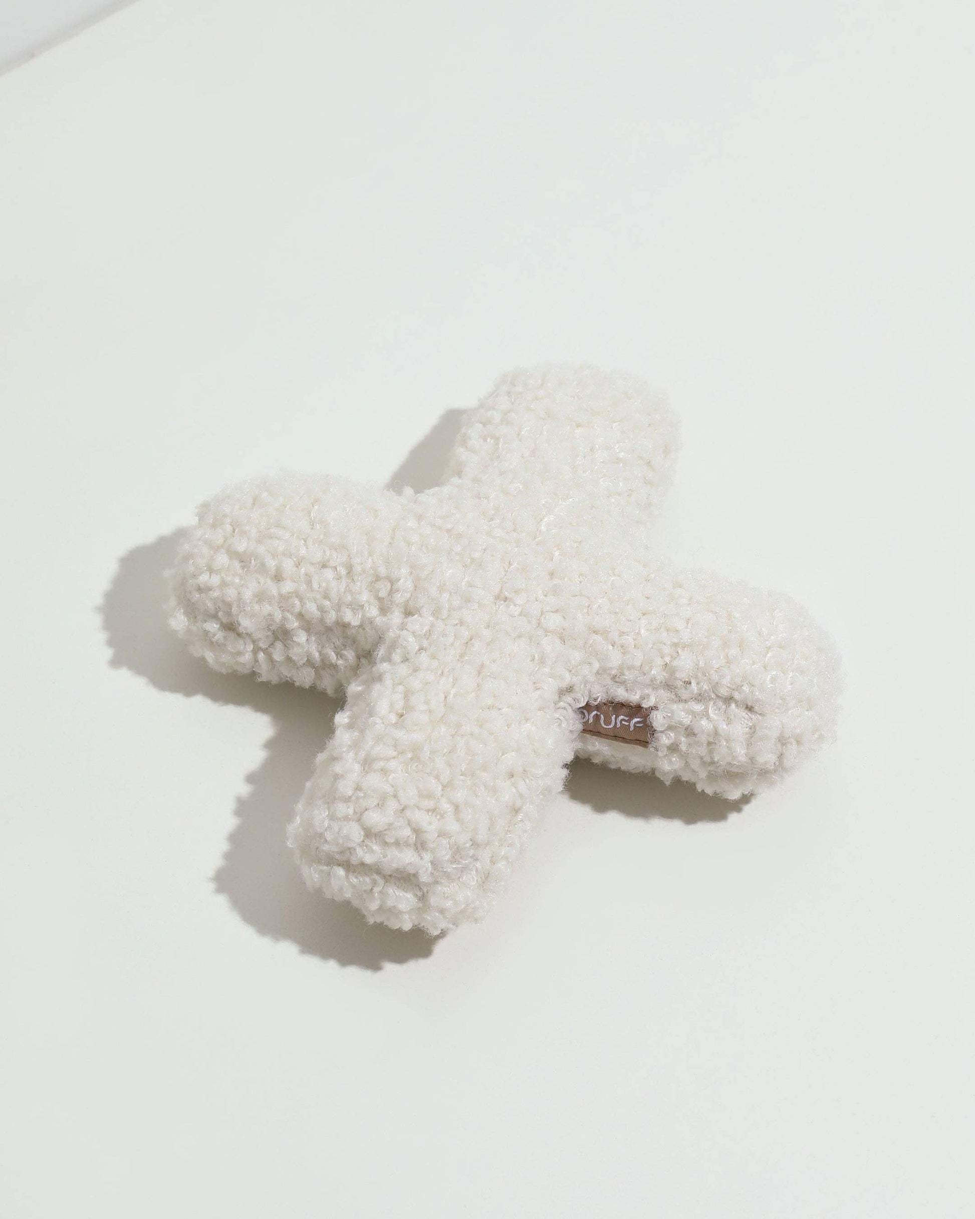 Dette stilfulde hundelegetøj har en indbygget squeaker og en praktisk X-form, der gør det ideelt til kast og leg.