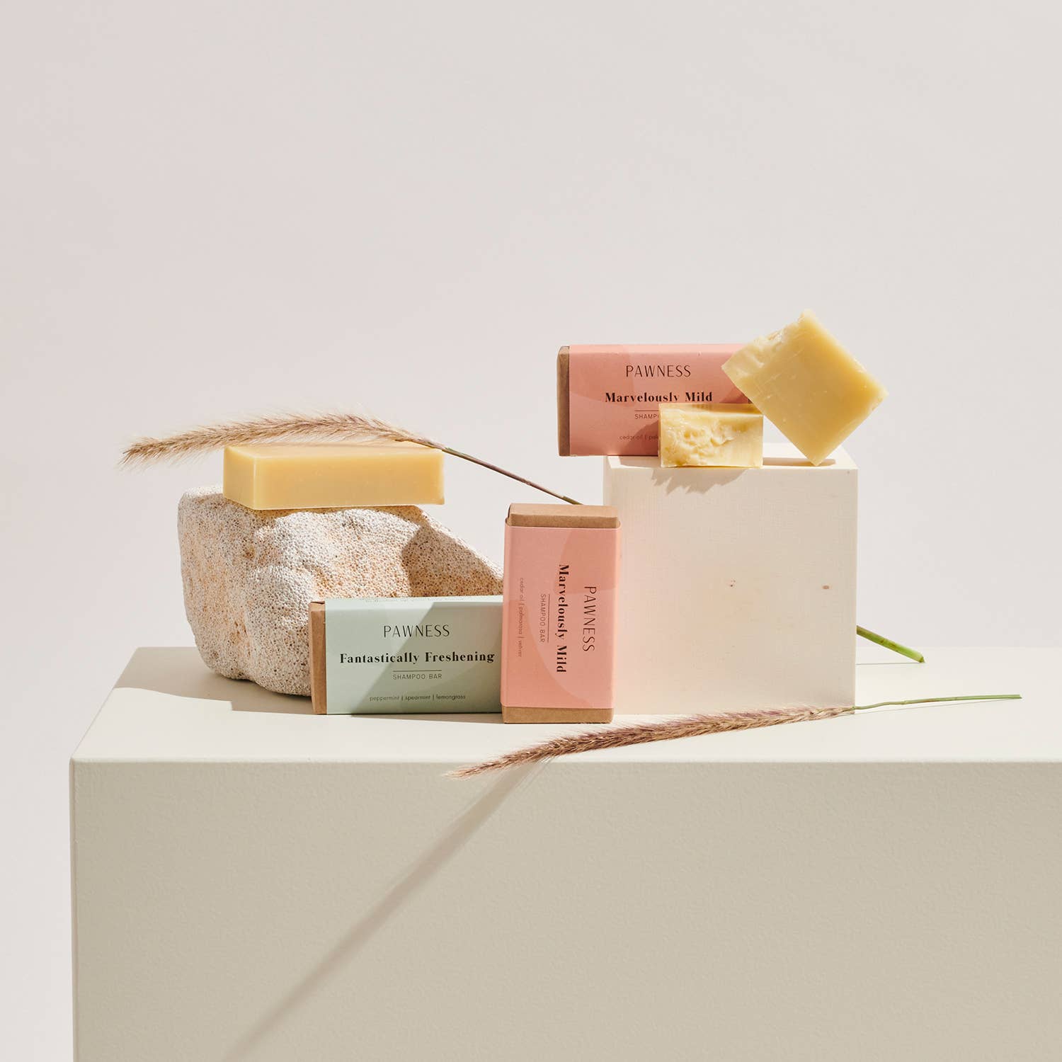 Gnid blot pelsen med den lækre shampoobar og skyl godt efter. Efterlader hundens pels fantastisk forfrisket med en duft af pebermynte, et let strejf af cedertræ olie, palmarosa, vetiver, patchouli og gurkemeje æteriske olier.