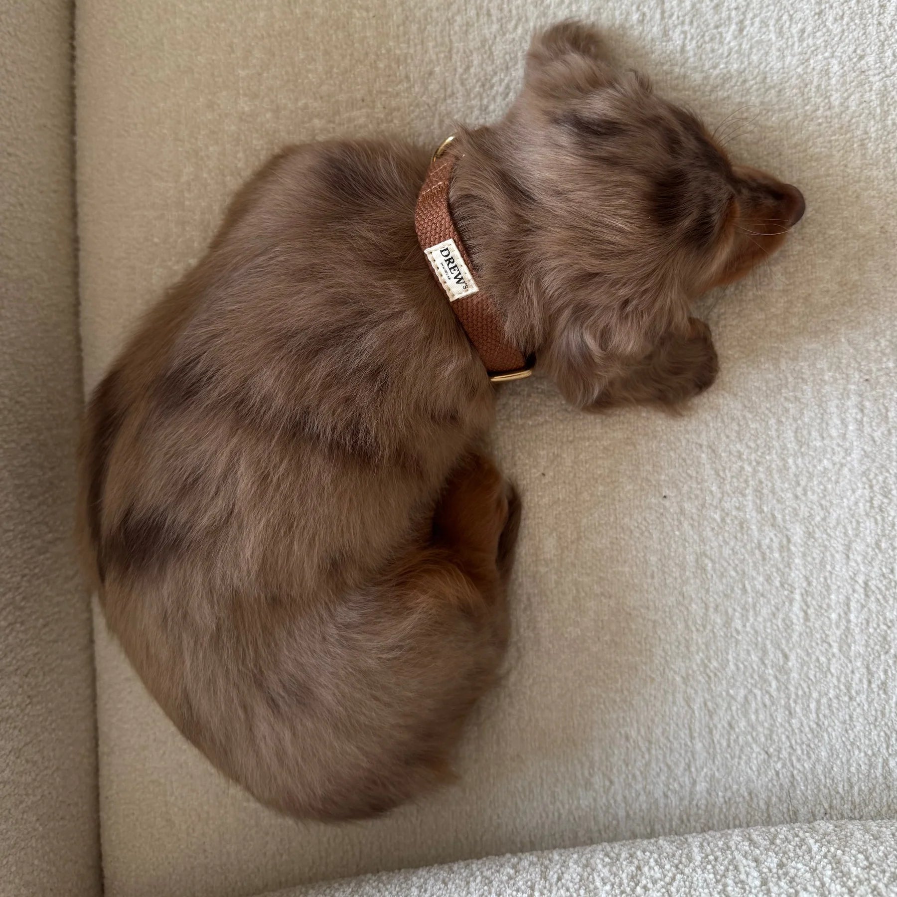 Et smukt hundehalsbånd i mørkebrun til din nye hvalp!