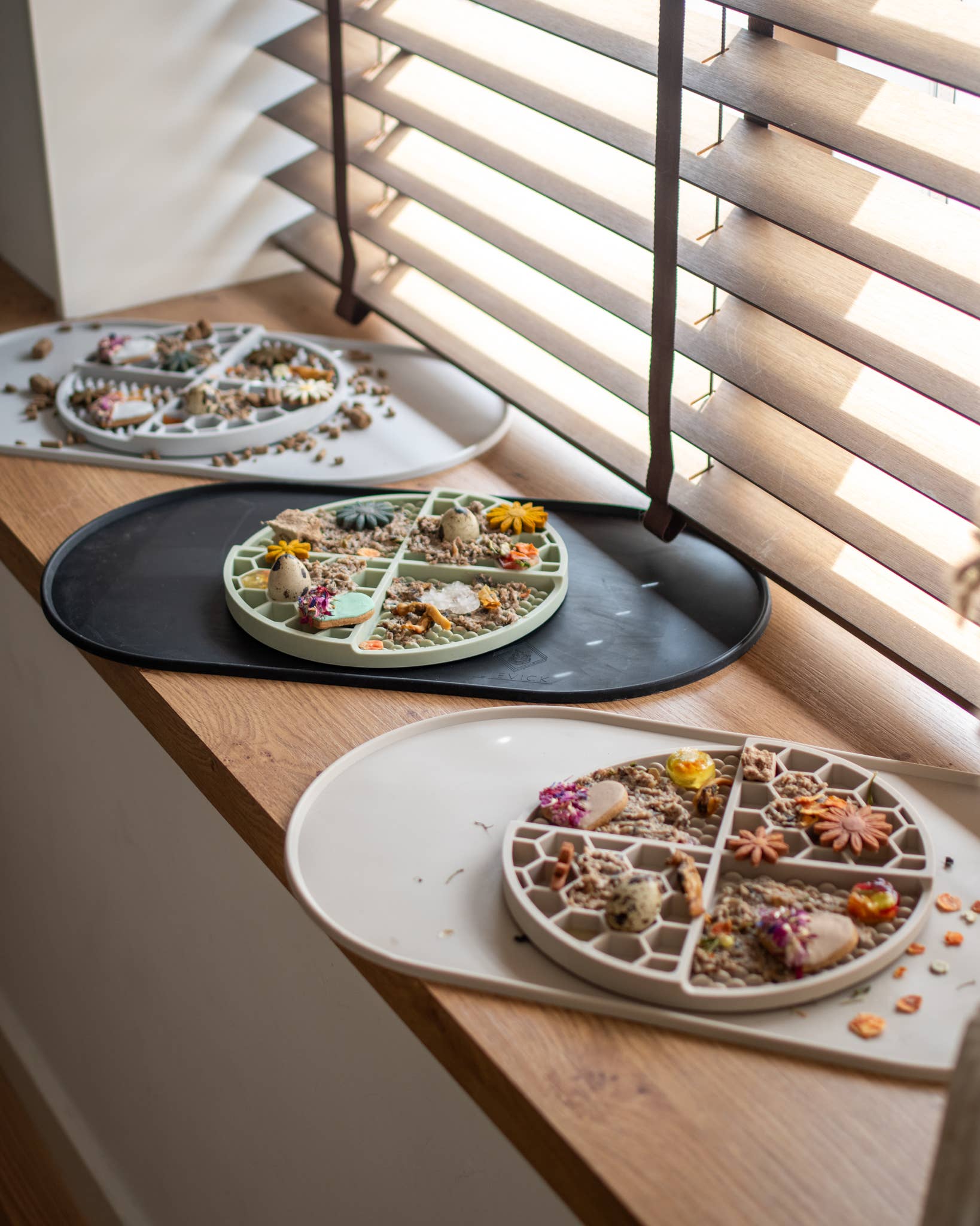 Der findes desuden de smukkeste slowfeeders/slikkemåtter i matchende farver, og samme virkelig lækre kvalitet.