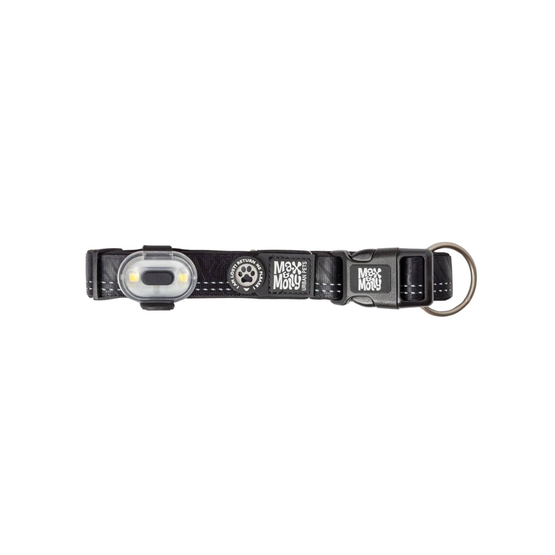 Den bløde silikonerem er tredobbelt justerbar, så den sidder sikkert på halsbånd, sele eller line – uden at genere din hund.