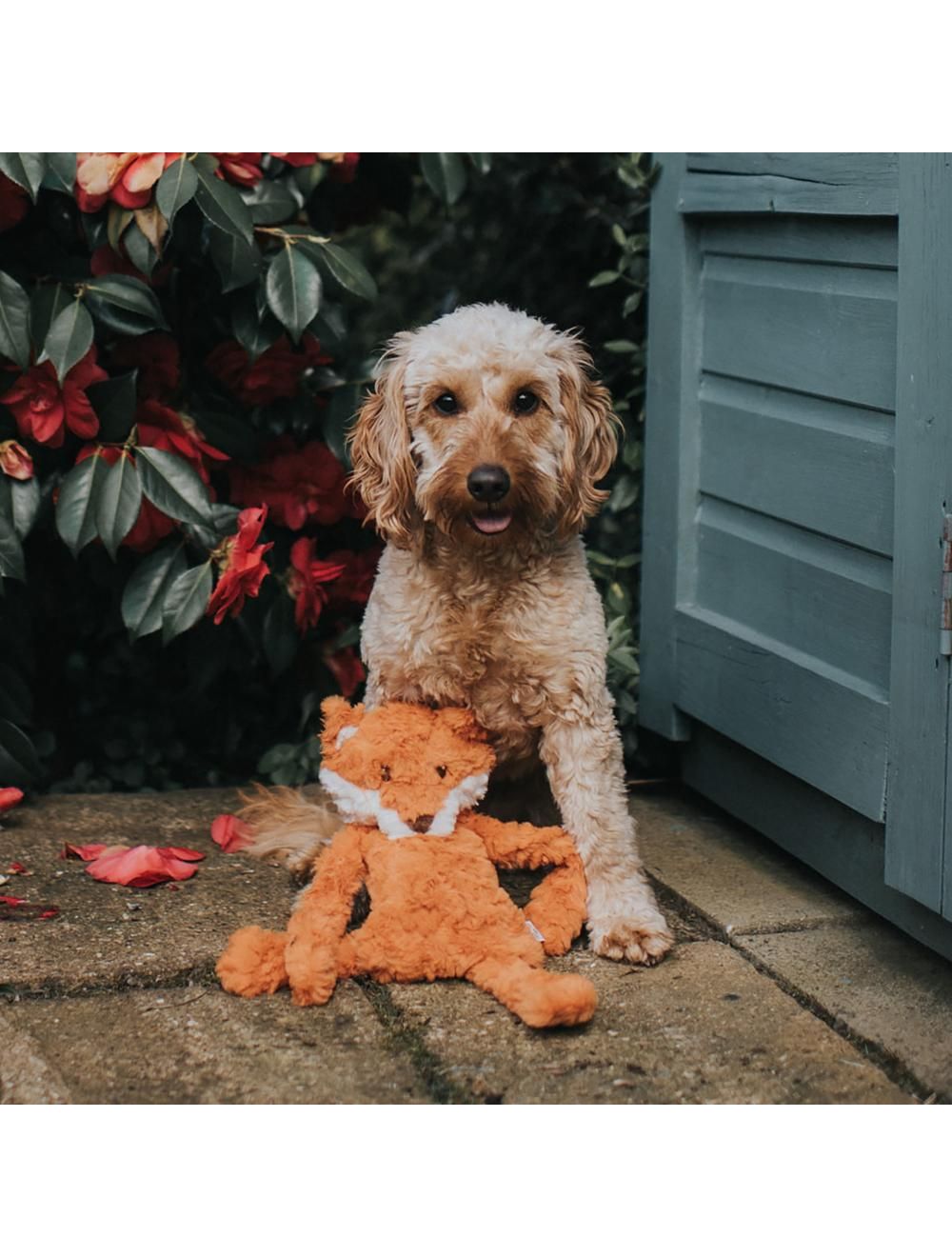 My Dog plyslegetøj af mærket Rosewood. Sød ræv i lækkert blødt plys med squeaker og knitrelyd. Ideel til den lille hvalp, der skal flytte til sit nye hjem eller hunde, der skal lære at være alene hjemme. Maven kan fyldes med noget, der dufter velkendt f.eks. en sok, og som trøster hunden og giver den tryghed.