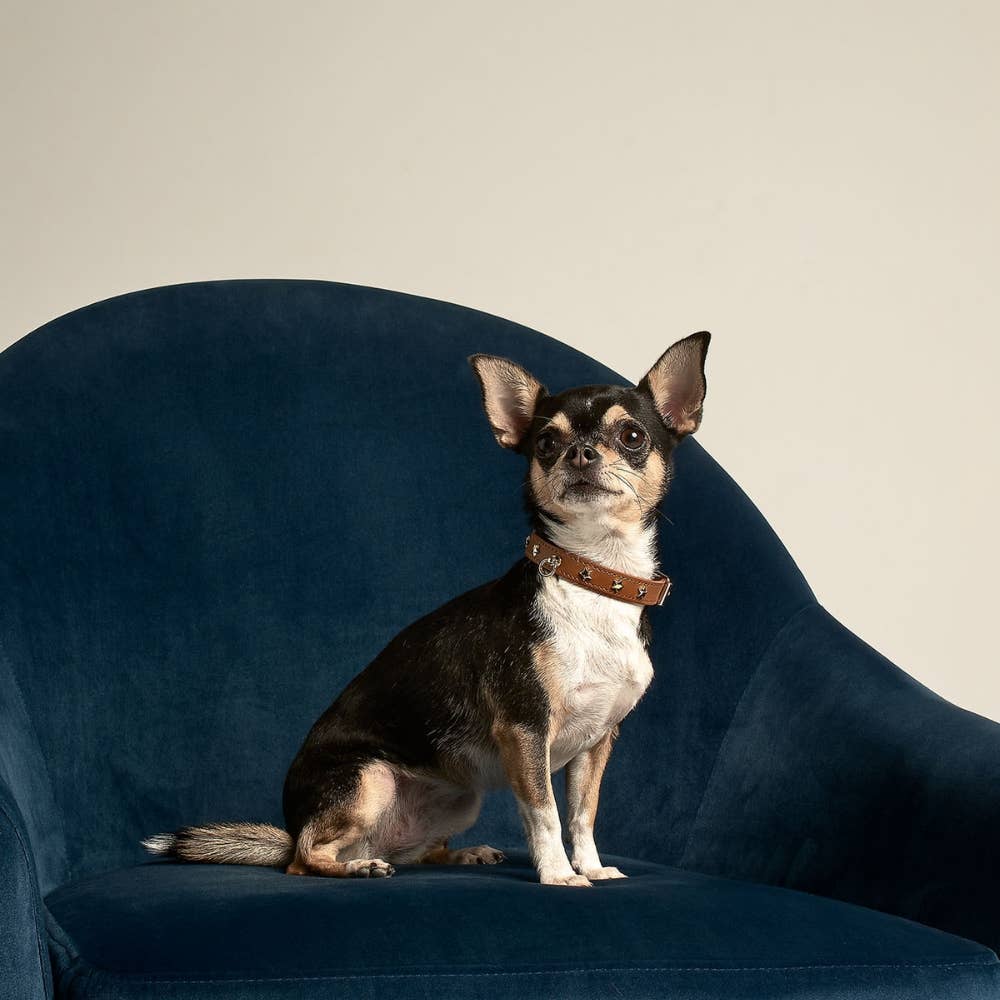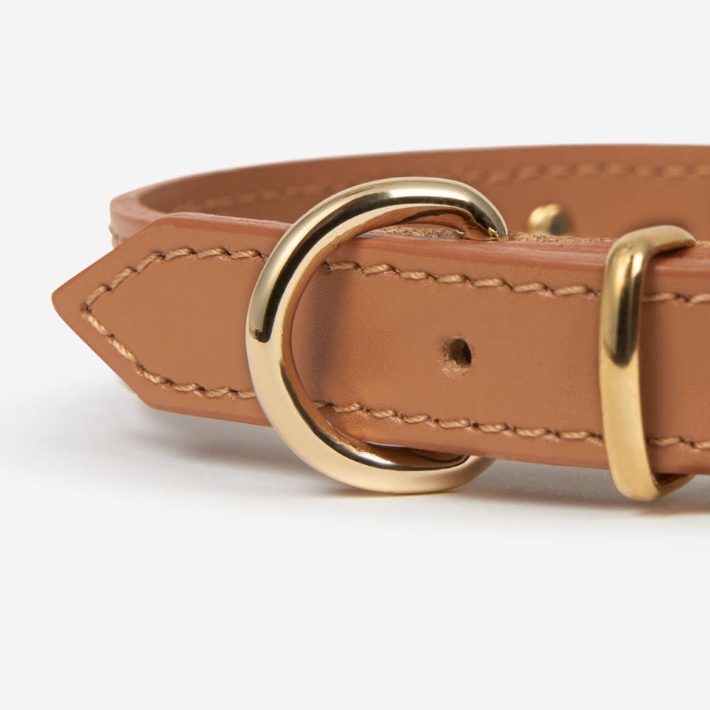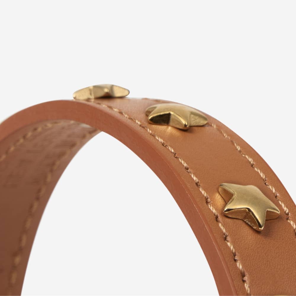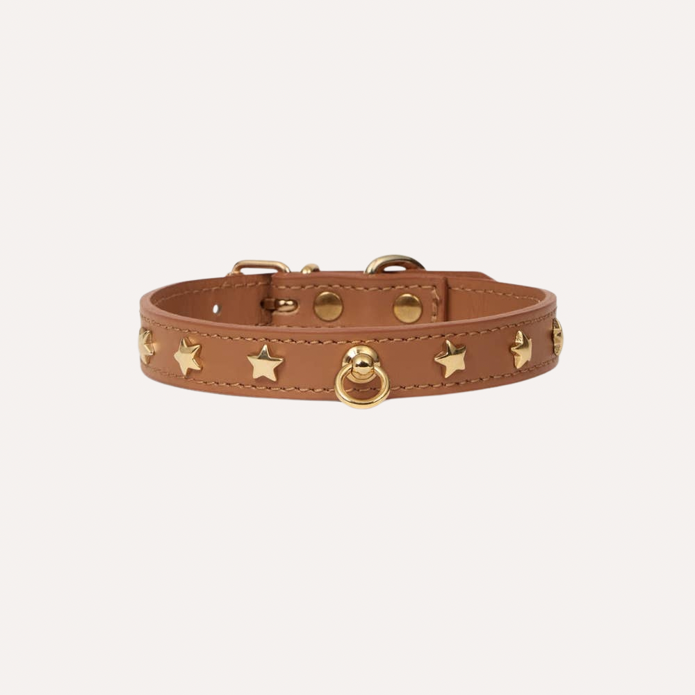 Nara læderhalsbånd med forgyldte stjerne-nitter, kamel