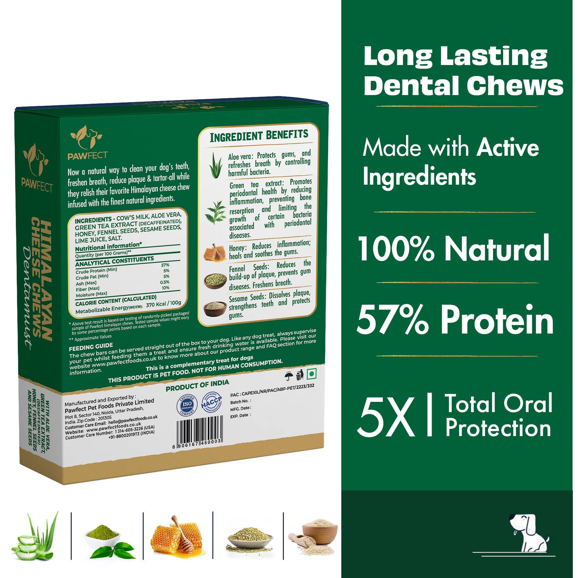 Fremstillet med de samme naturvenlige ingredienser som vores populære Pawfect Cheese Chew Dental Bars – men nu med de ekstra fordele fra Aloe Vera. Disse tyggeben er udviklet til at støtte både tand- og knoglesundhed på en naturlig og velsmagende måde.