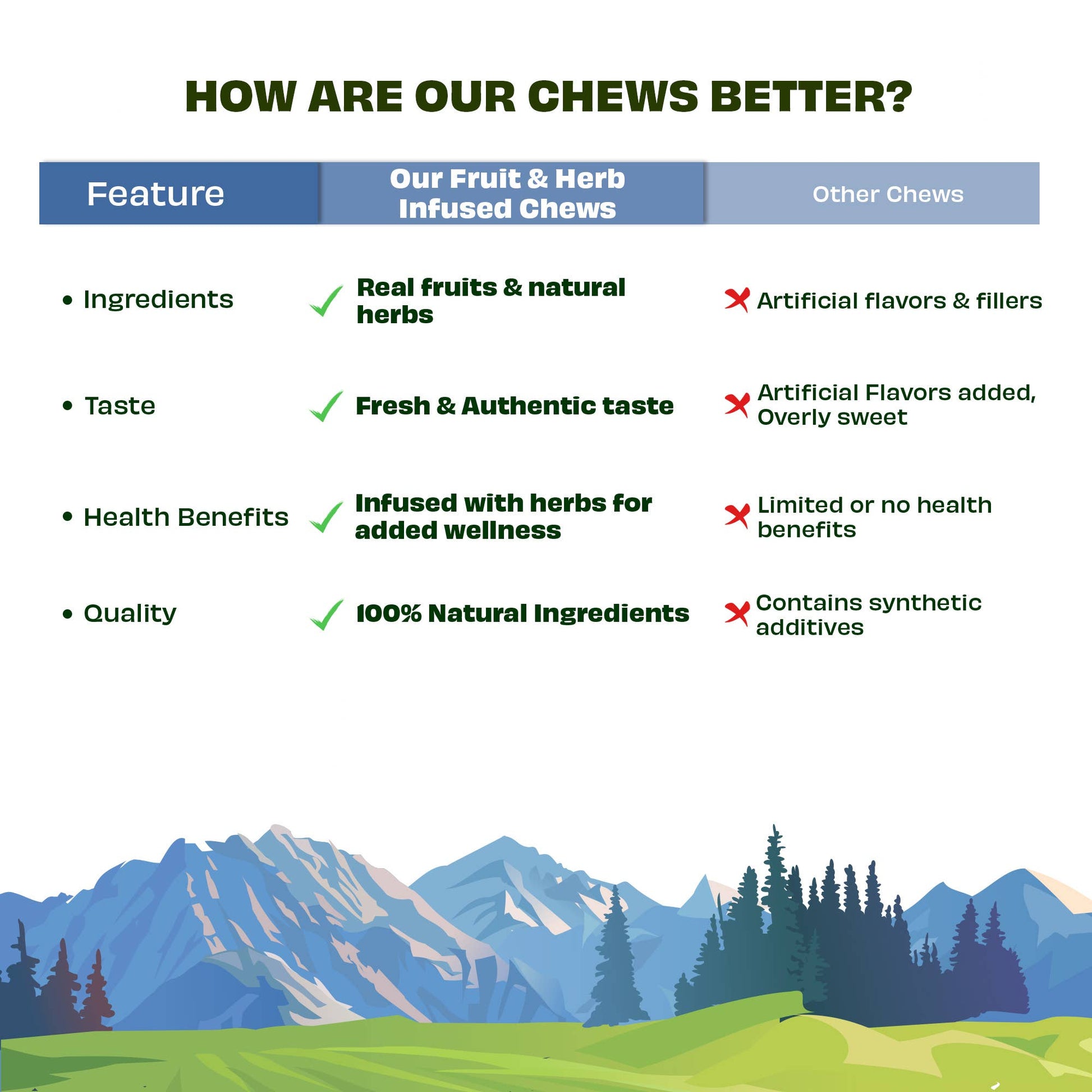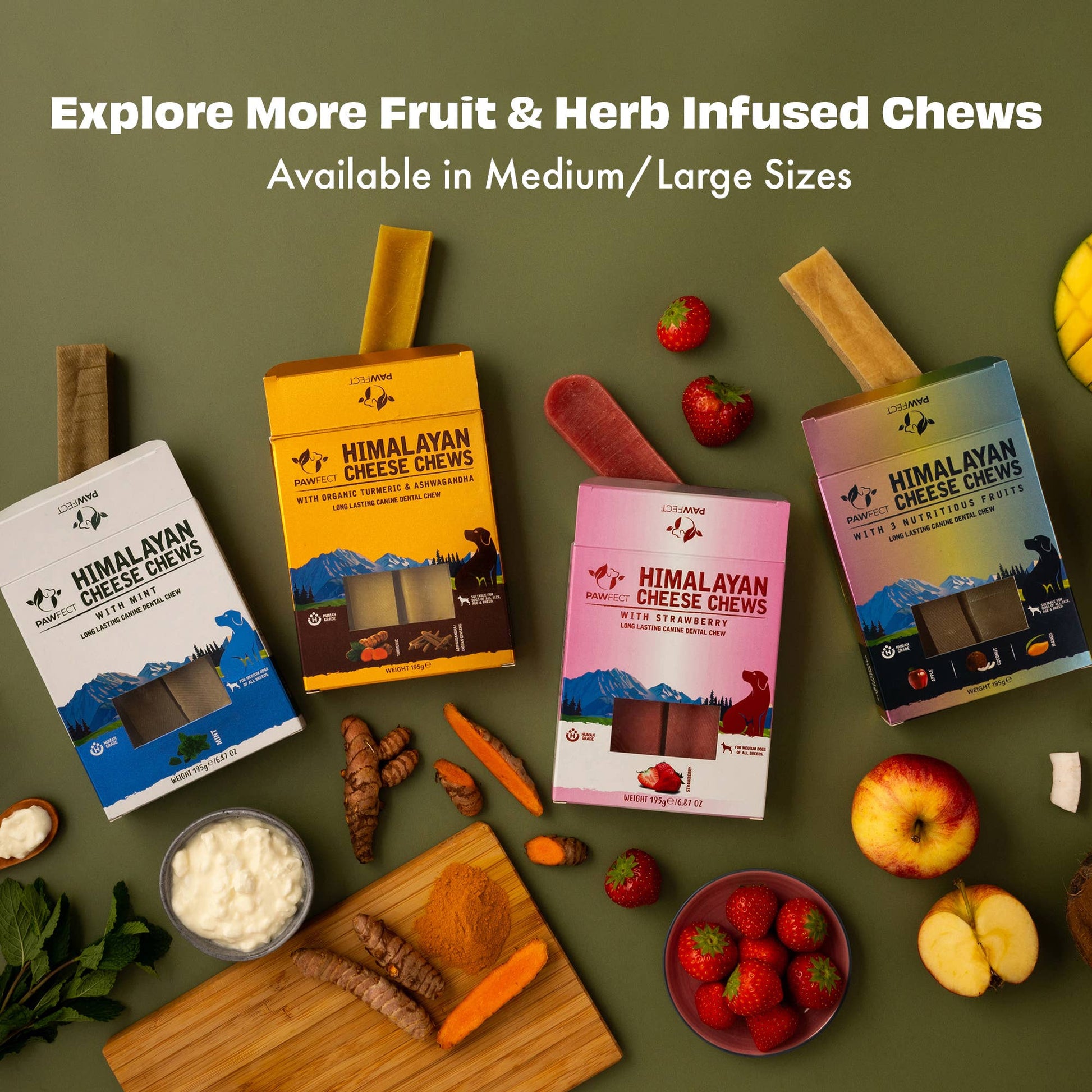 Vores uimodståelige tyggeben kombinerer den fyldige, krydrede smag af ost med et forfriskende strejf af mynte – en smagsoplevelse, hunde vil elske.