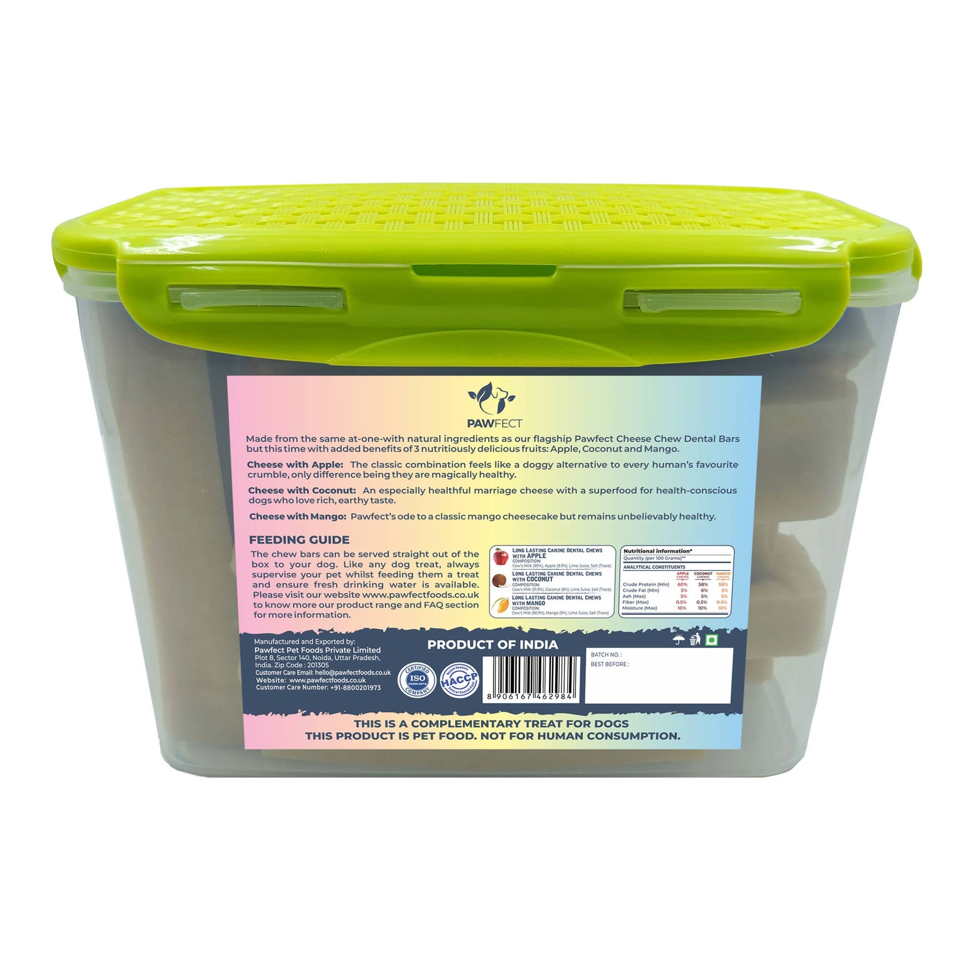 Giv din hund den ultimative smagsoplevelse – med et sundt twist! Disse godbidder forener den rige og cremede ostesmag, som hunde elsker, med de naturlige fordele fra tre næringsrige frugter: æble, kokos og mango. Hver bid er en lille fest for smagsløgene – en lækkerbisken, der er både sund og uimodståelig.