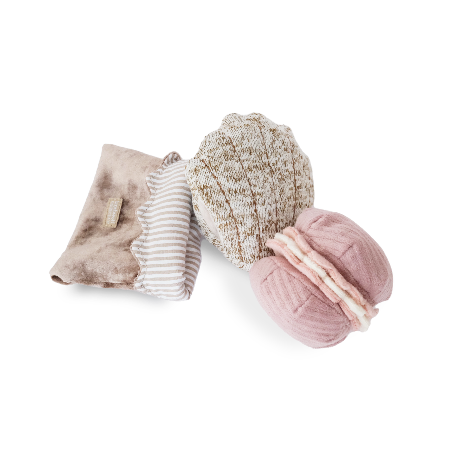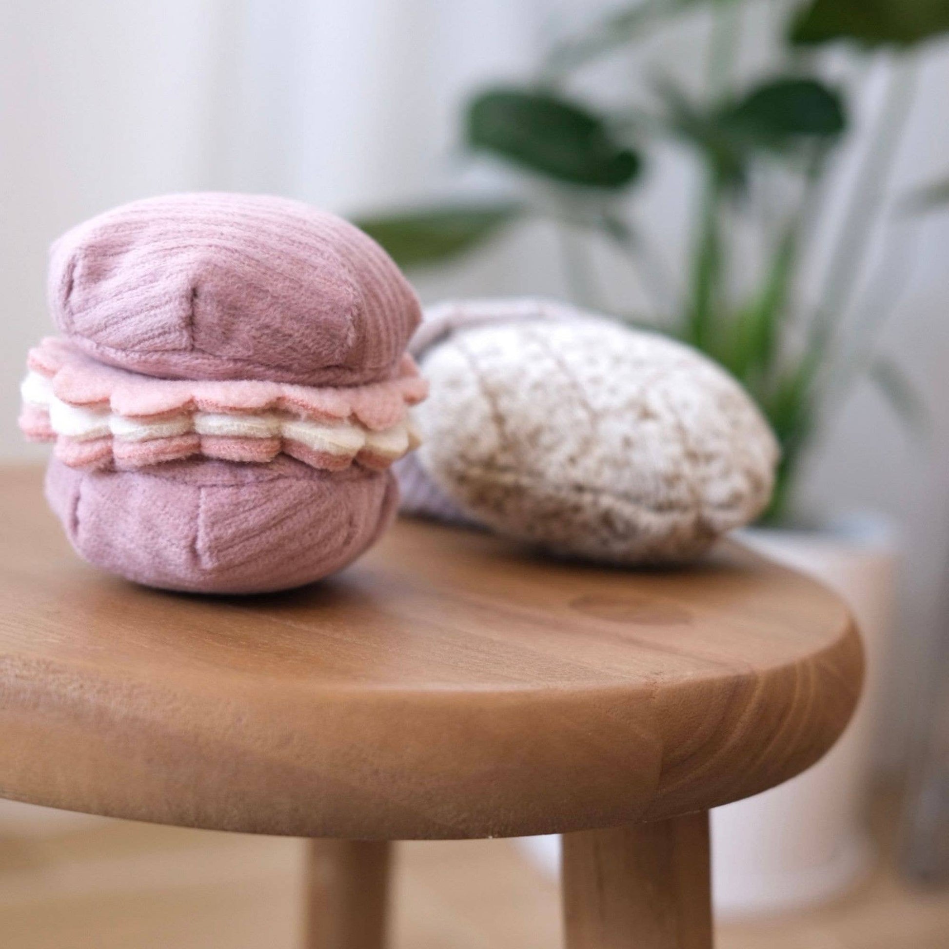 Desuden en smuk aktivitets-macaron med skjulte lommer til godbidder, der gør legen både sjov og udfordrende.