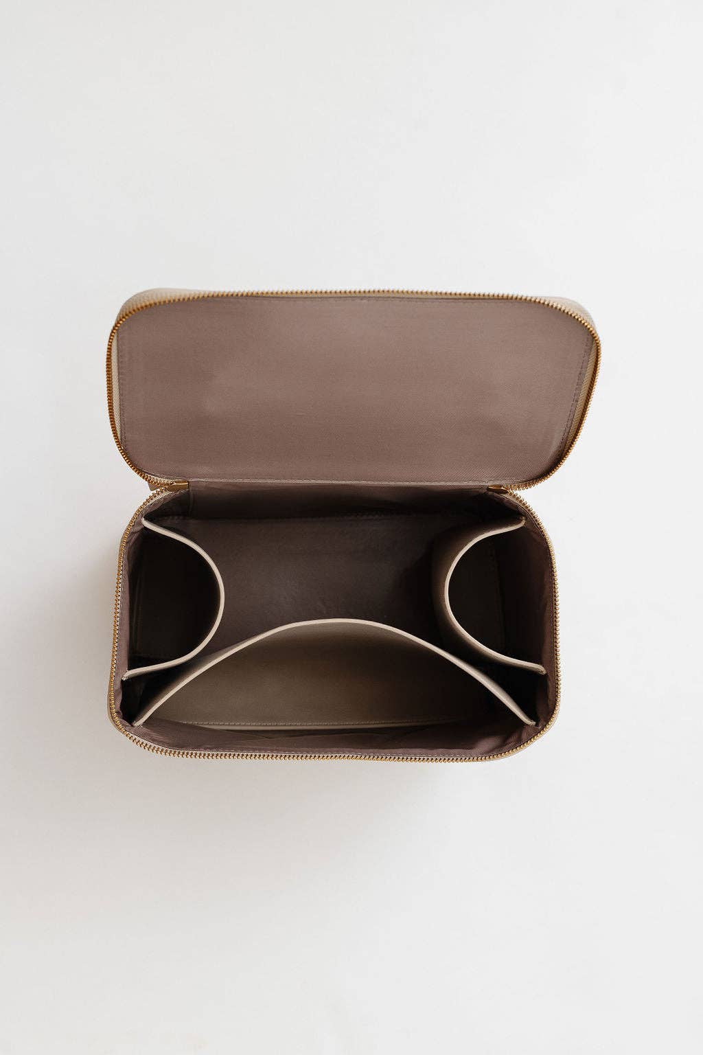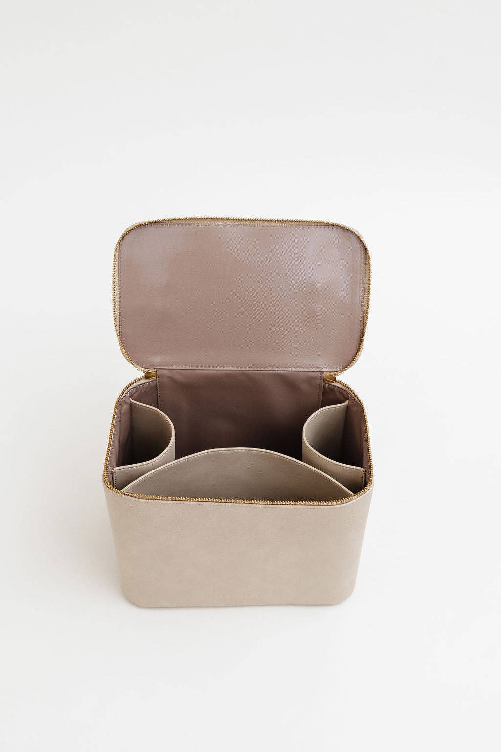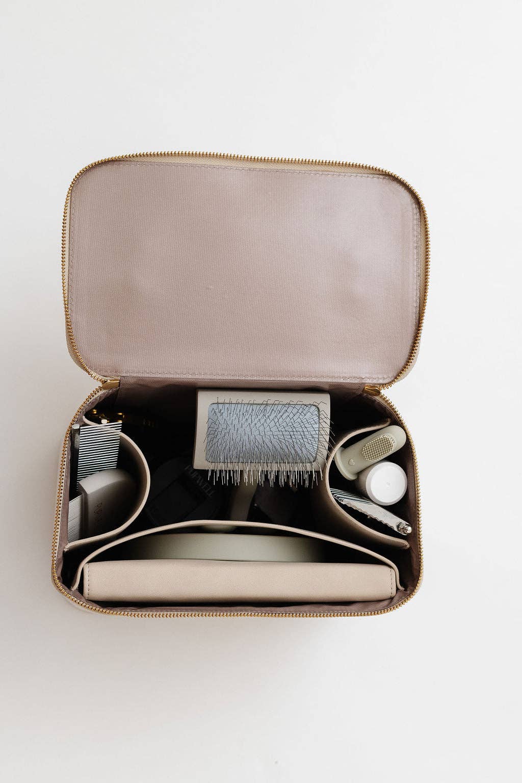 Grooming Organizeren er inspireret af kvinders egne makeupposer og kombinerer funktionalitet med elegance. Fremstillet af let, vegansk læder er denne taske den perfekte løsning til at holde dine plejeværktøjer eller personlige ejendele pænt organiseret i en stilfuld taske.