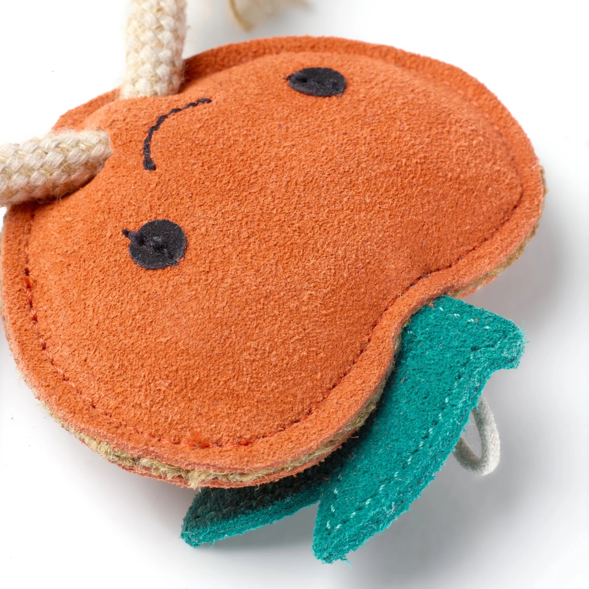 Denne friske og farverige lille satsuma giver timevis af sikker leg for dig og dit kæledyr. Legetøjet er lavet af 100 % naturlig jute og beklædt med blødt ruskind, så det er helt sikkert at tygge i. Det er også perfekt til mindre munde, der elsker at lege trækkeleg.