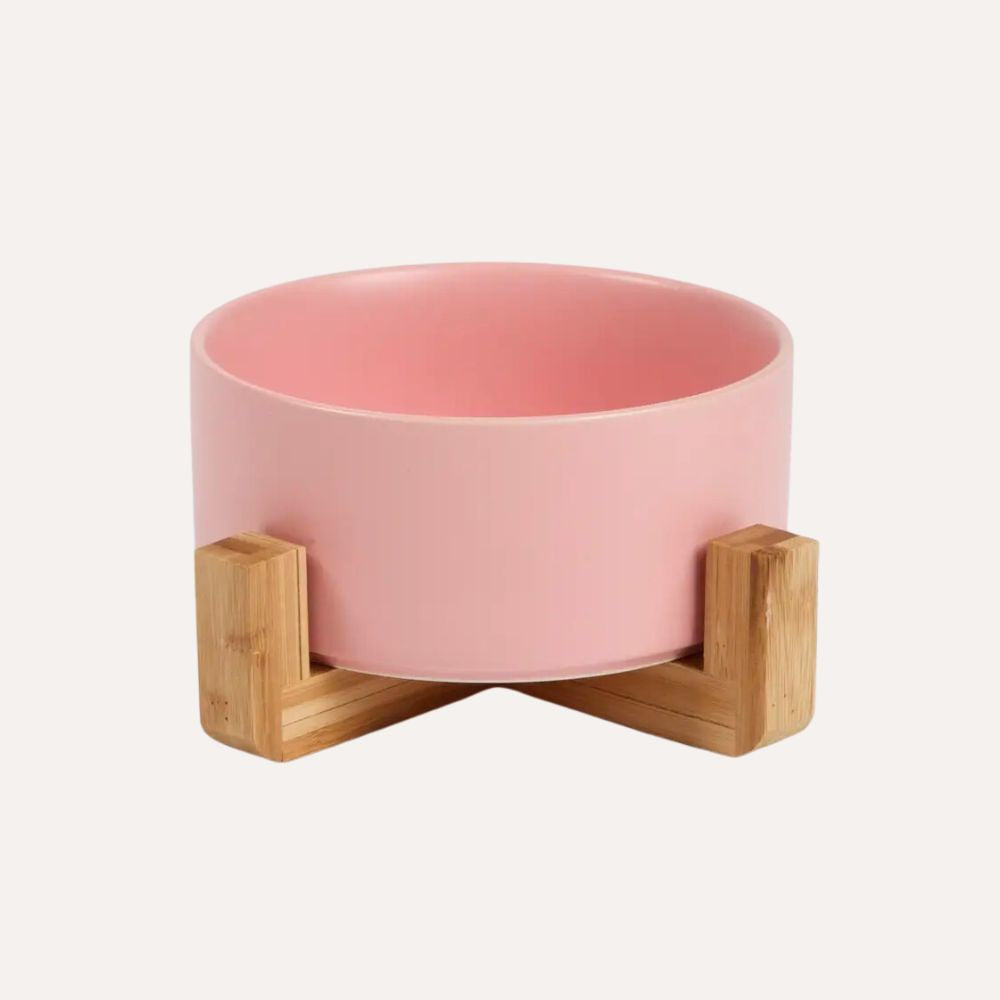 Smuk, minimalistisk mad- og vandskål på træfod.