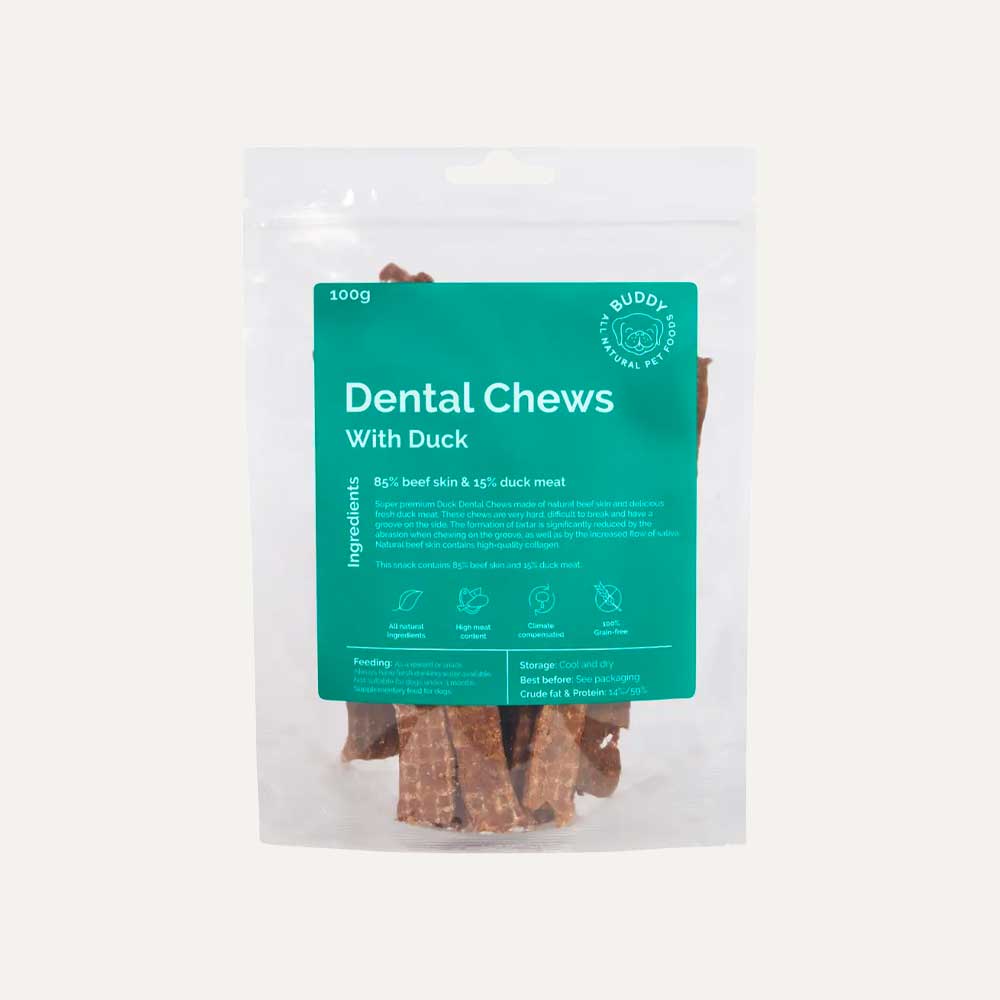 Duck Dental Chews er lavet af koskind og lækkert andekød.