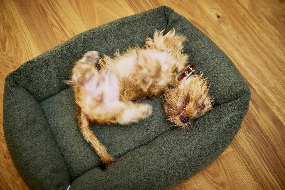 Klassisk hundeseng - grønt teddy betræk