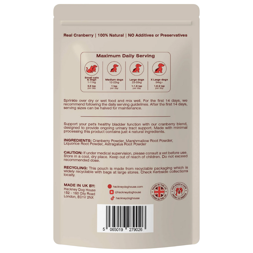 Giv din pelsede ven den blærestøtte, den har brug for – med vores naturlige tranebærblanding. Udviklet til at fremme urinvejssundheden og hjælpe kæledyr, der er særligt udsatte for tilbagevendende urinvejsinfektioner. Vores skånsomt forarbejdede opskrift indeholder kun fire naturlige ingredienser og bevarer maksimal kvalitet.